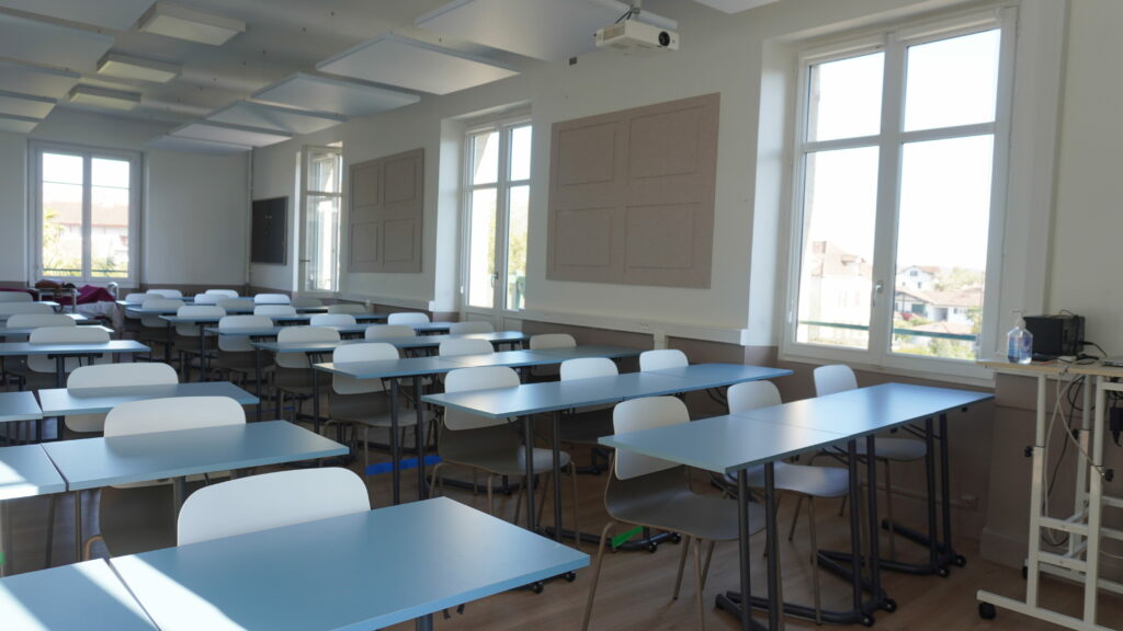 Nous avons équipé les espaces pédagogiques avec du mobilier moderne et ergonomique pour améliorer le confort et le bien‑être des utilisateurs.