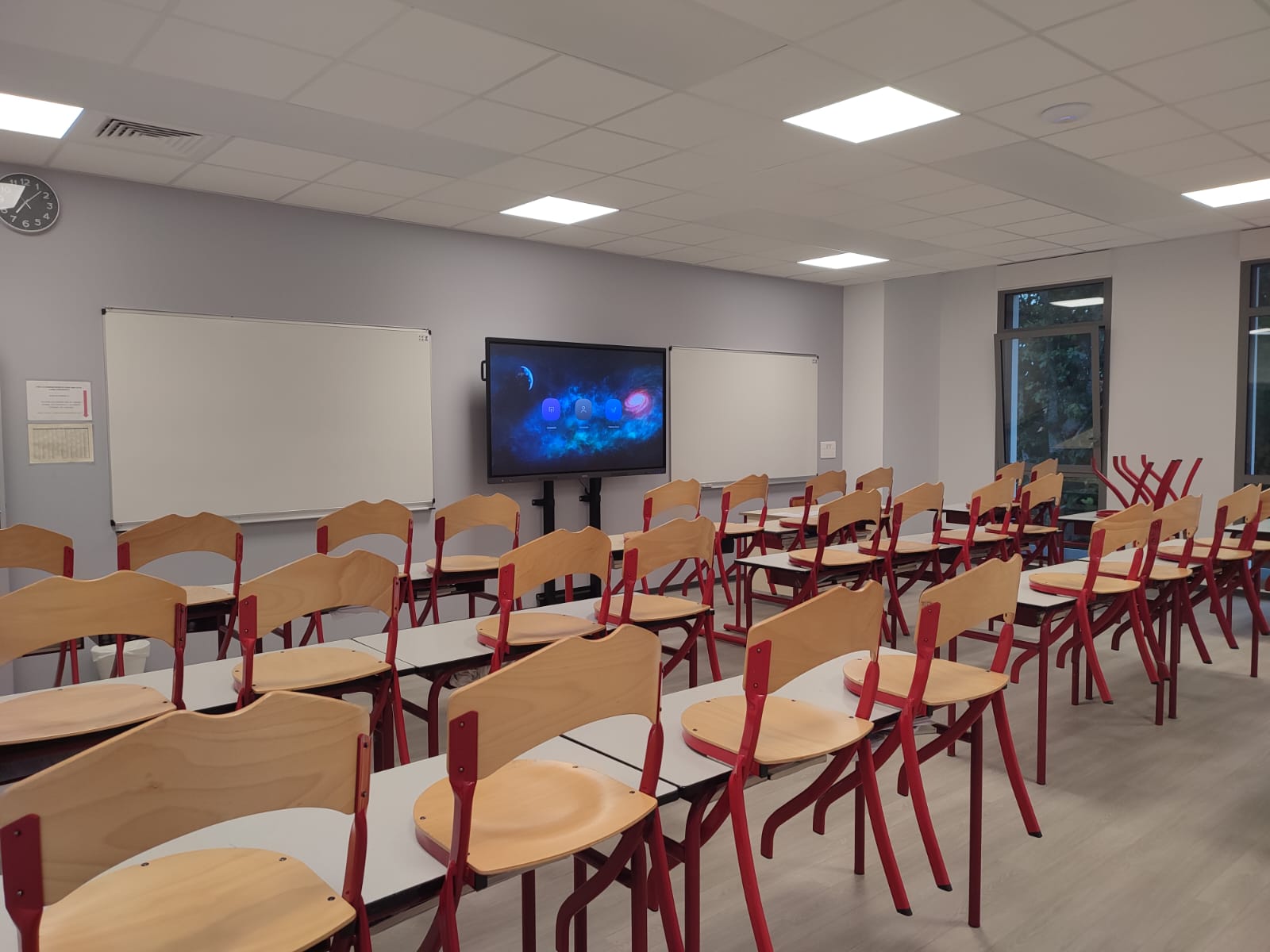 Collectivité Service est ravie d’avoir contribué à l’aménagement et à l’équipement des salles de classe du lycée Villa Pia à Bayonne. Écrans interactifs, tableaux blancs, tables et chaises de classes – des indispensables pour le bon déroulé des cours.